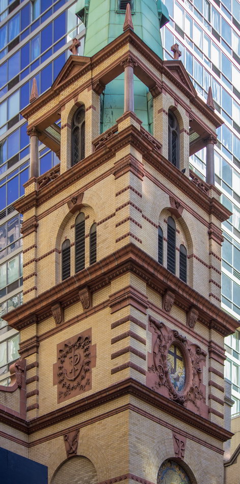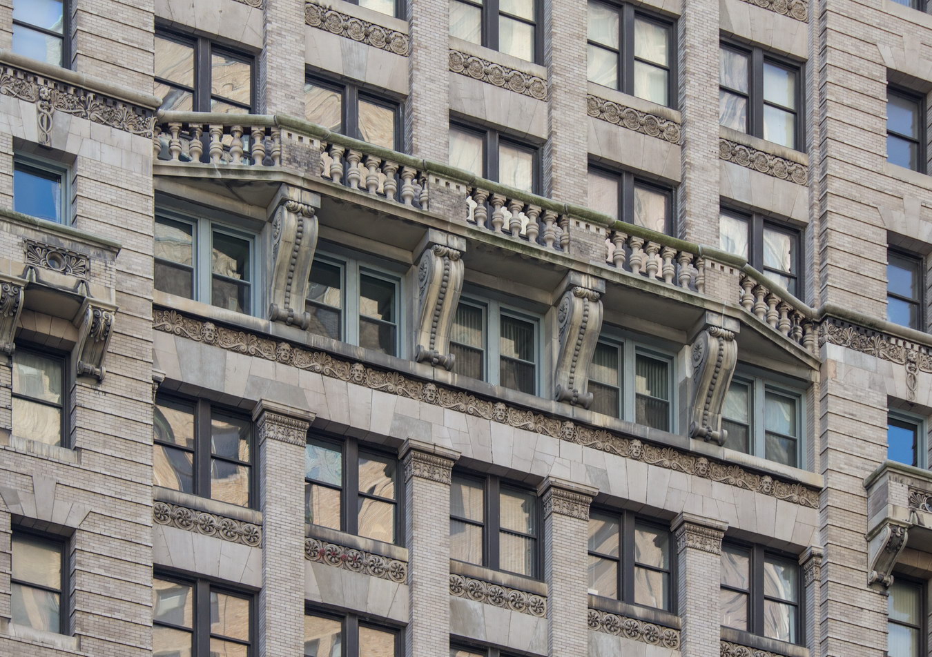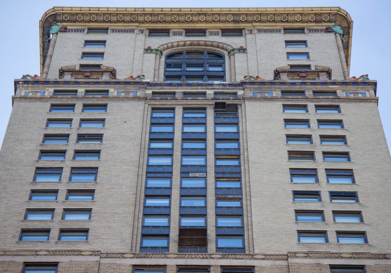 On one hand, the Park Row facade has three distinct vertical sections, which emphasize the building’s height, and a substantial limestone base and ornate crown. On the other hand, it also has six horizontal divisions, which diminish the building’s height. Robertson himself wrote that he had tried to make the building “look less than its real height,” according to The New York Times.