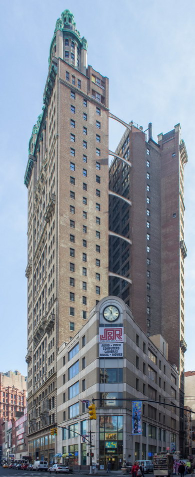 In 2002 the Park Row Building was converted to mixed use. The bottom 10 floors remain commercial – most being used by electronics retailer J & R; the top floors have been converted to 210 apartments. Conversion plans included turning the three-story cupolas into triplex apartments.